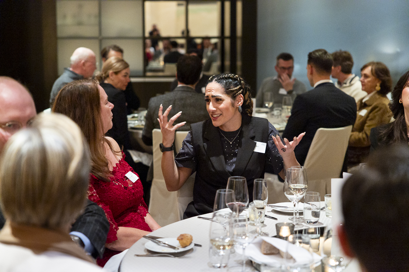 Auch kulinarisch war der Abend klar strukturiert: Den Auftakt bildete ein Carpaccio von der Roten Beete, gefolgt von geschmorter Rinderbacke mit Trüffeljus. Den Abschluss bildete ein vielfältiges Dessertbuffet. Zwischen den Gängen boten kurze Vorstellungsrunden Raum für einen lebendigen und zielgerichteten Austausch, bei dem jede Teilnehmerin und jeder Teilnehmer zu Wort kam.